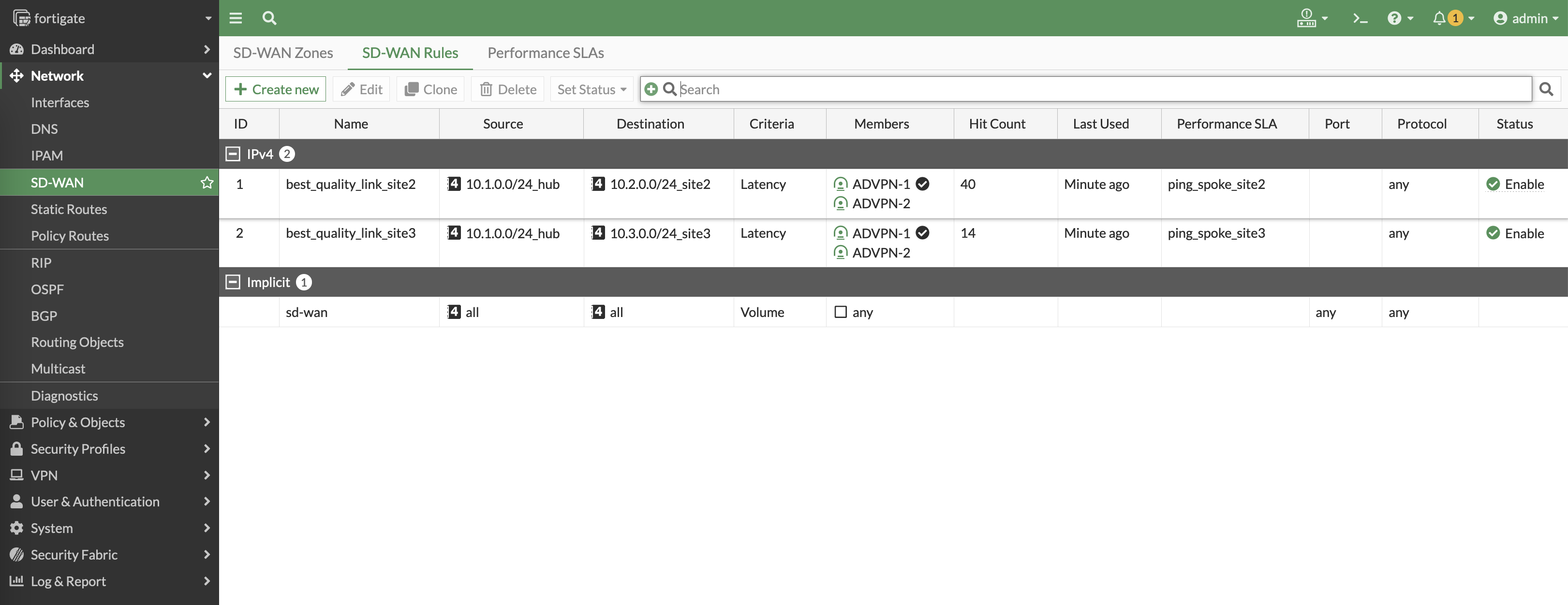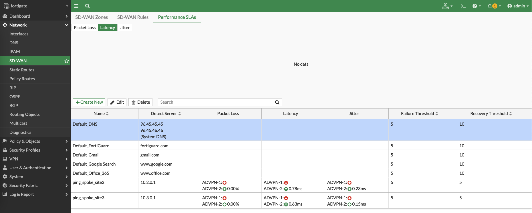Here we can see the rules determine which VPN has the best latency to reach the sites, and will continuously measure the latency to make sure the best path is used