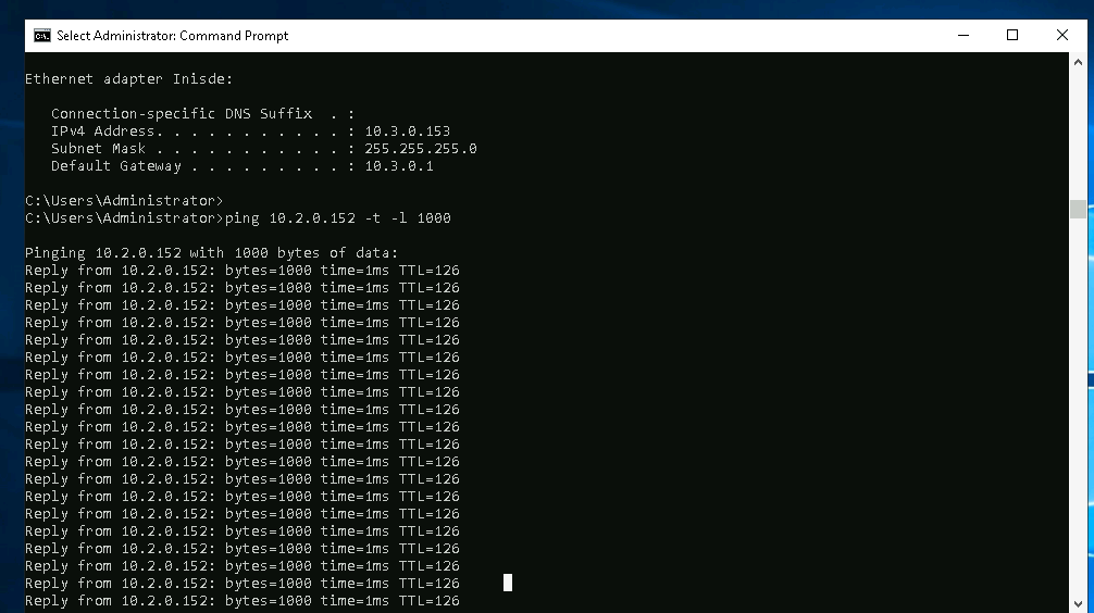 And we’re able to ping from local subnet 1 to local subnet 2