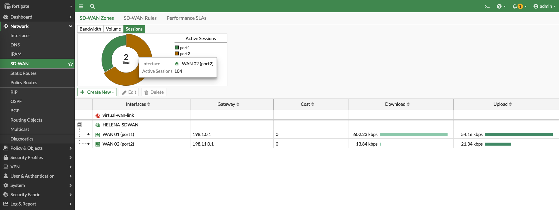 And back on the Fortigate, we can see the traffic flowing through the SD-WAN Interface