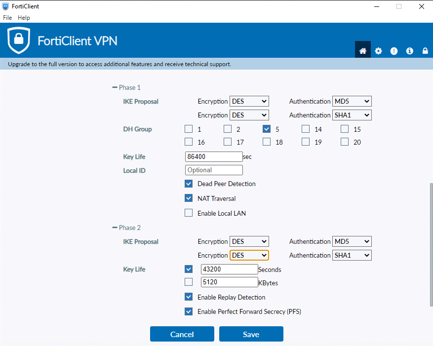 Because we’re using an evaluation license, we have to set the IKE Proposal to use weak encryption configuration as below