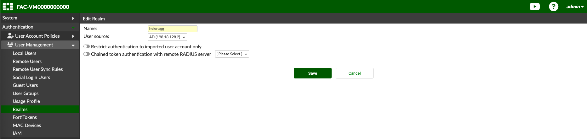 And here we add the created Realm, we configure so it looks up users on the 2 User Groups created earlier