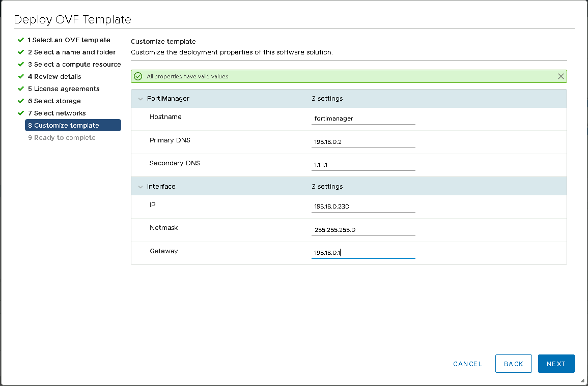 Configure the management interface when deploying the ova