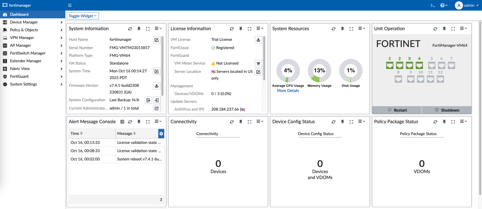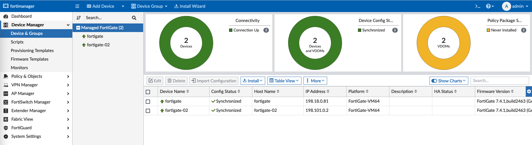 And the Fortimanager is up and running