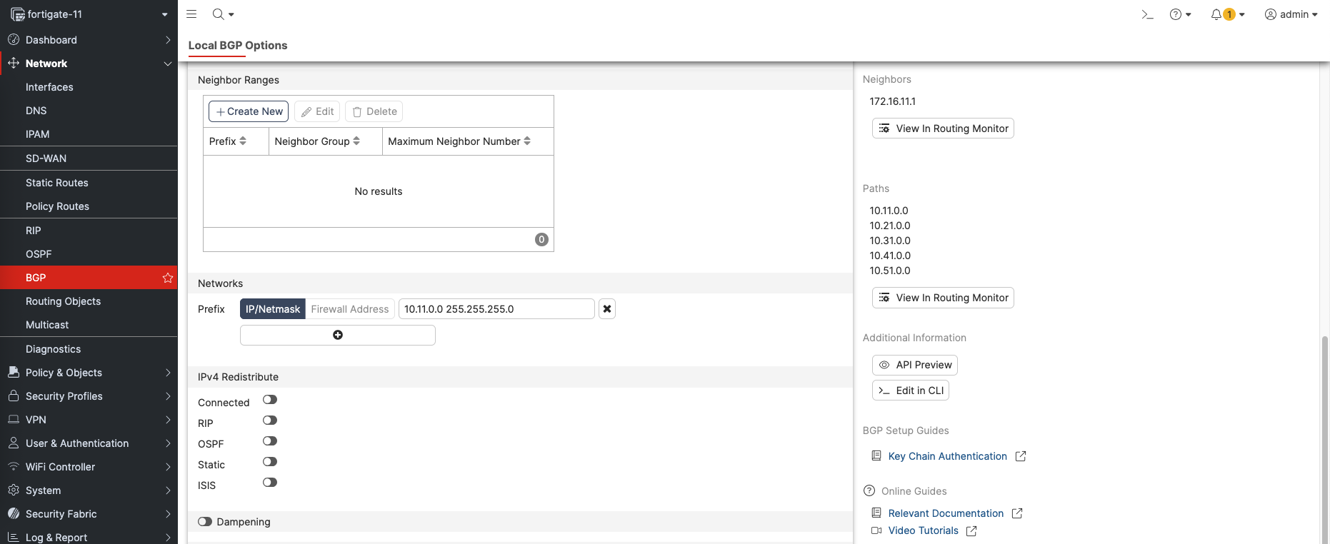 On Forti side, enable BGP by giving it AS Number, Router ID and the BGP Neighbor
