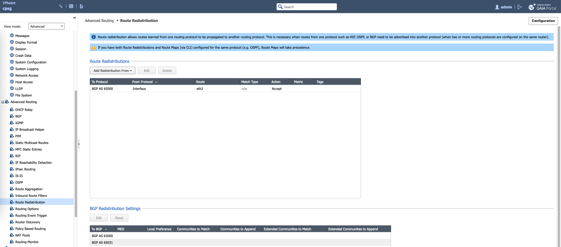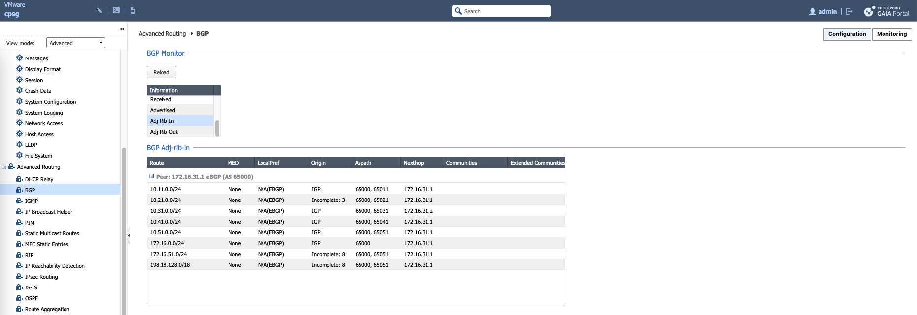 On Check Point, we enable BGP by configuring Router ID, AS Number, and Peer Groups