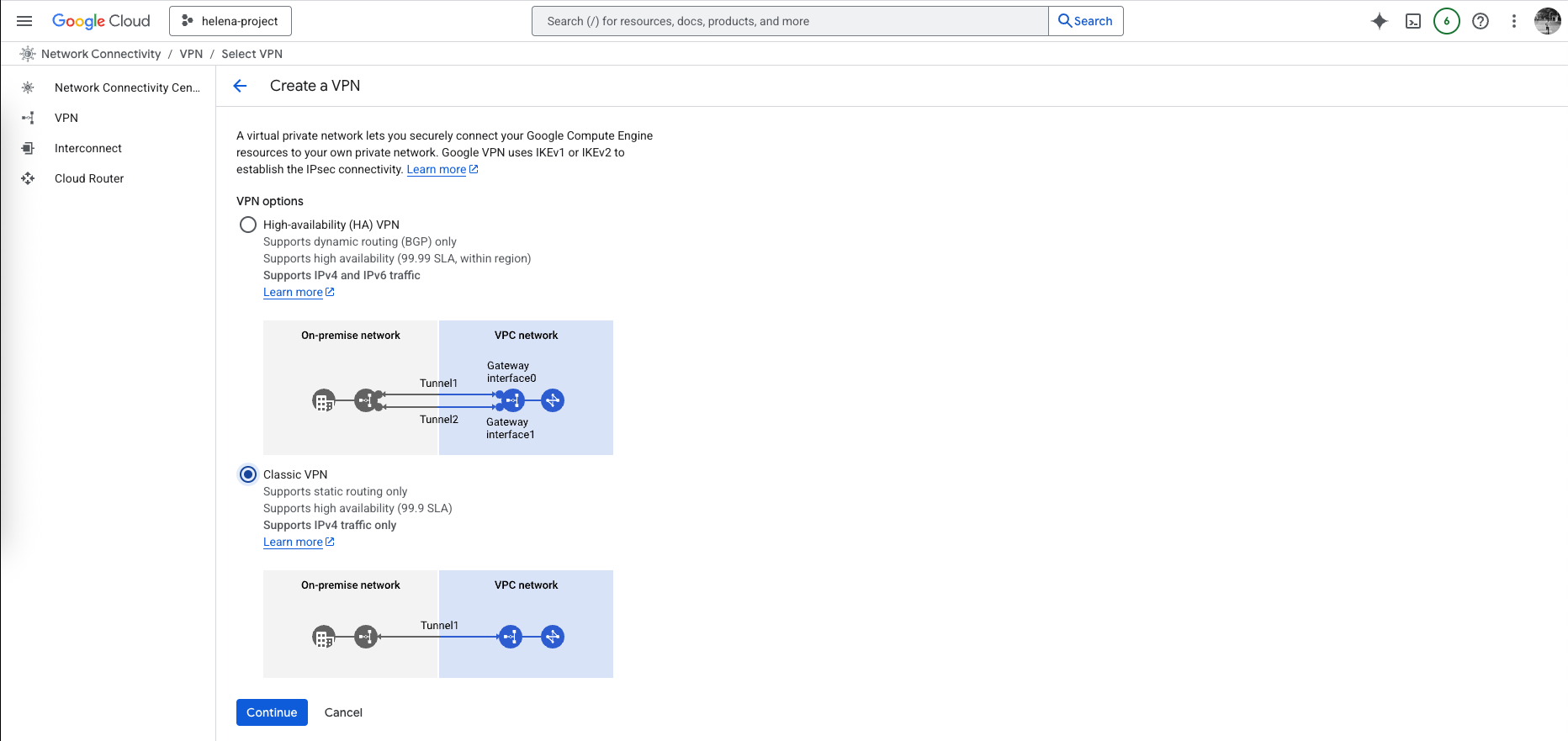 Next we create the Classic VPN