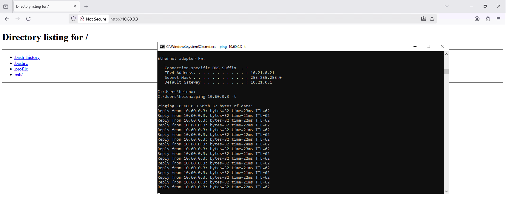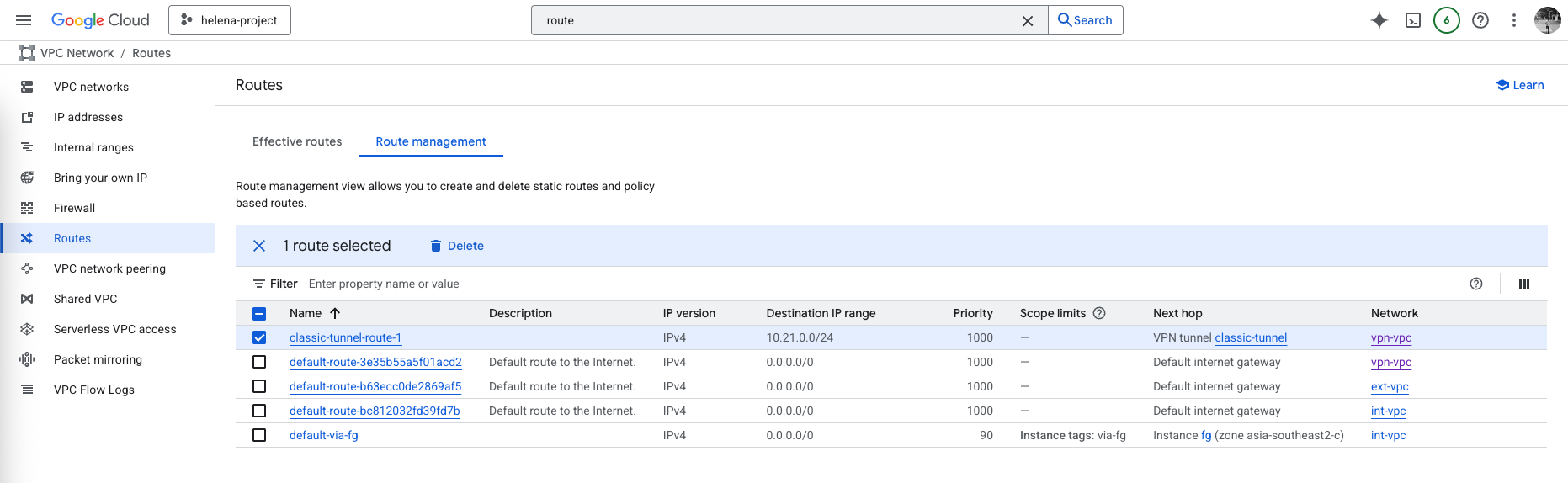 This also automatically creates a static route to 10.21.0.0/24 using the VPN as the next hop