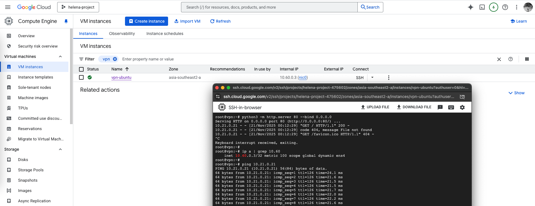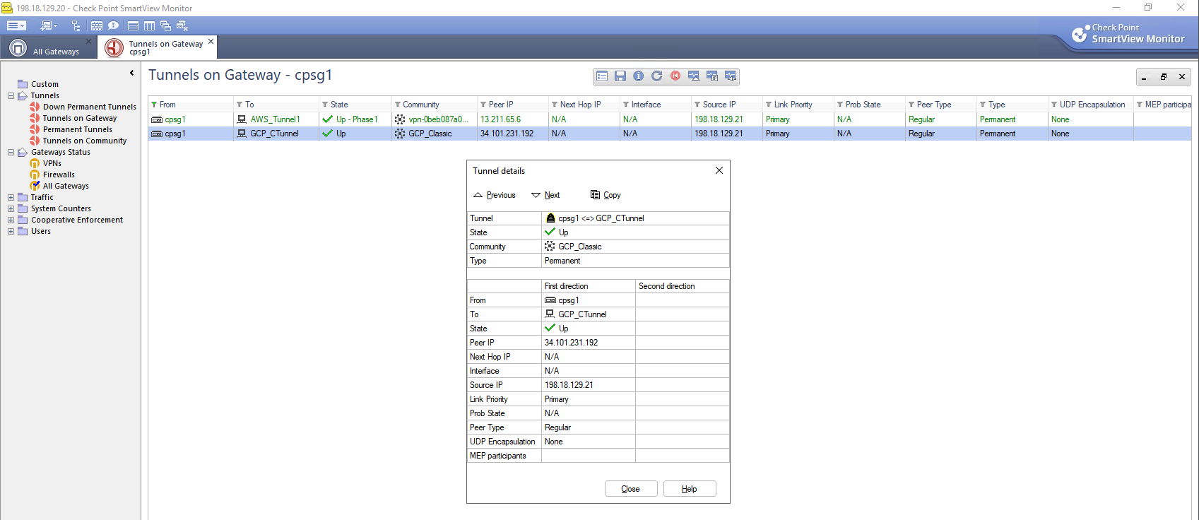 On GCP side, we can see the Tunnel is now Established