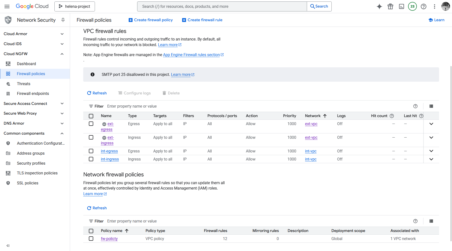 Next we’ll create a Firewall Policy
