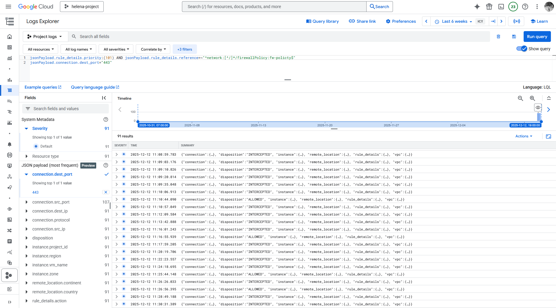 We can see the logs for this event inside the firewall policy