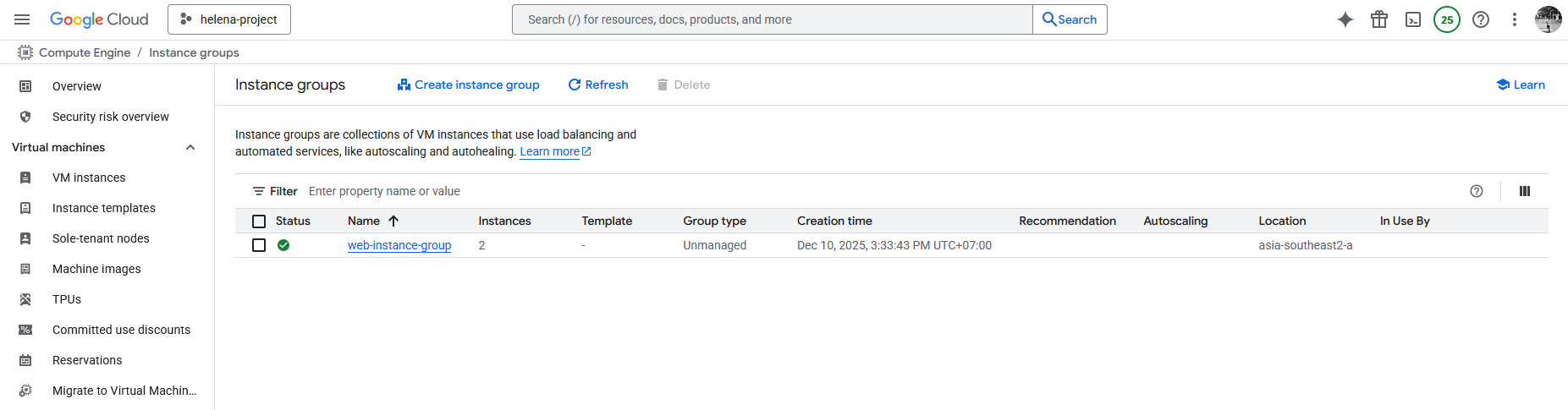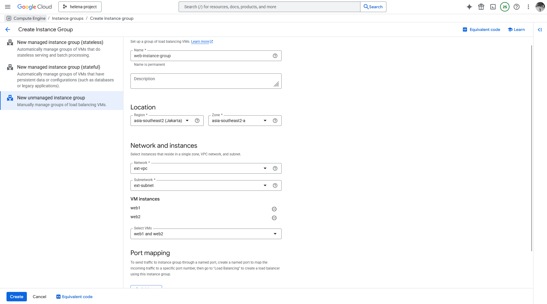 Next we create an Unmanaged Instance Group to contain these 2 linux servers