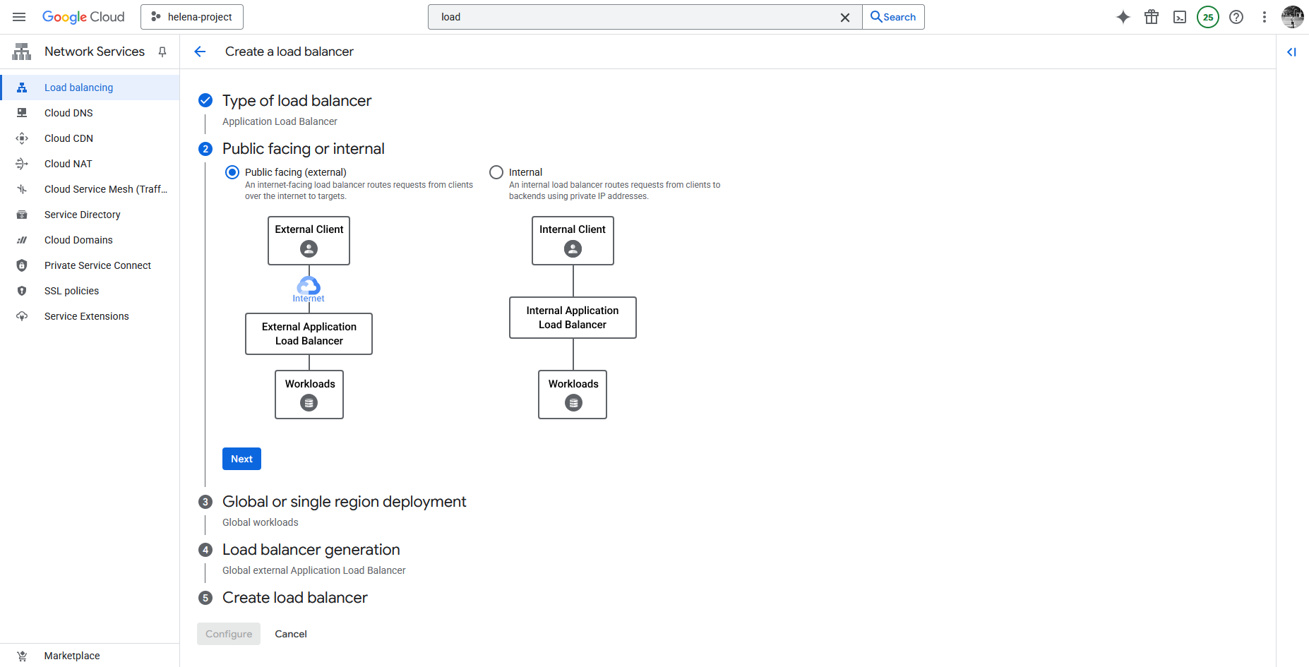 Next we select the Global External Application Load Balancer