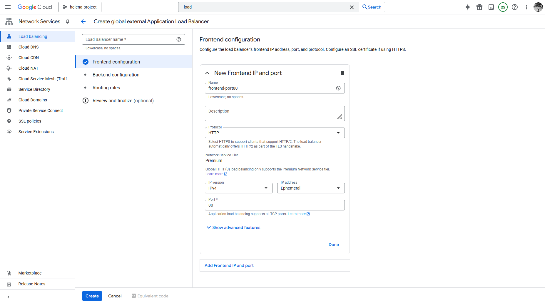 And then we can create the Load Balancer