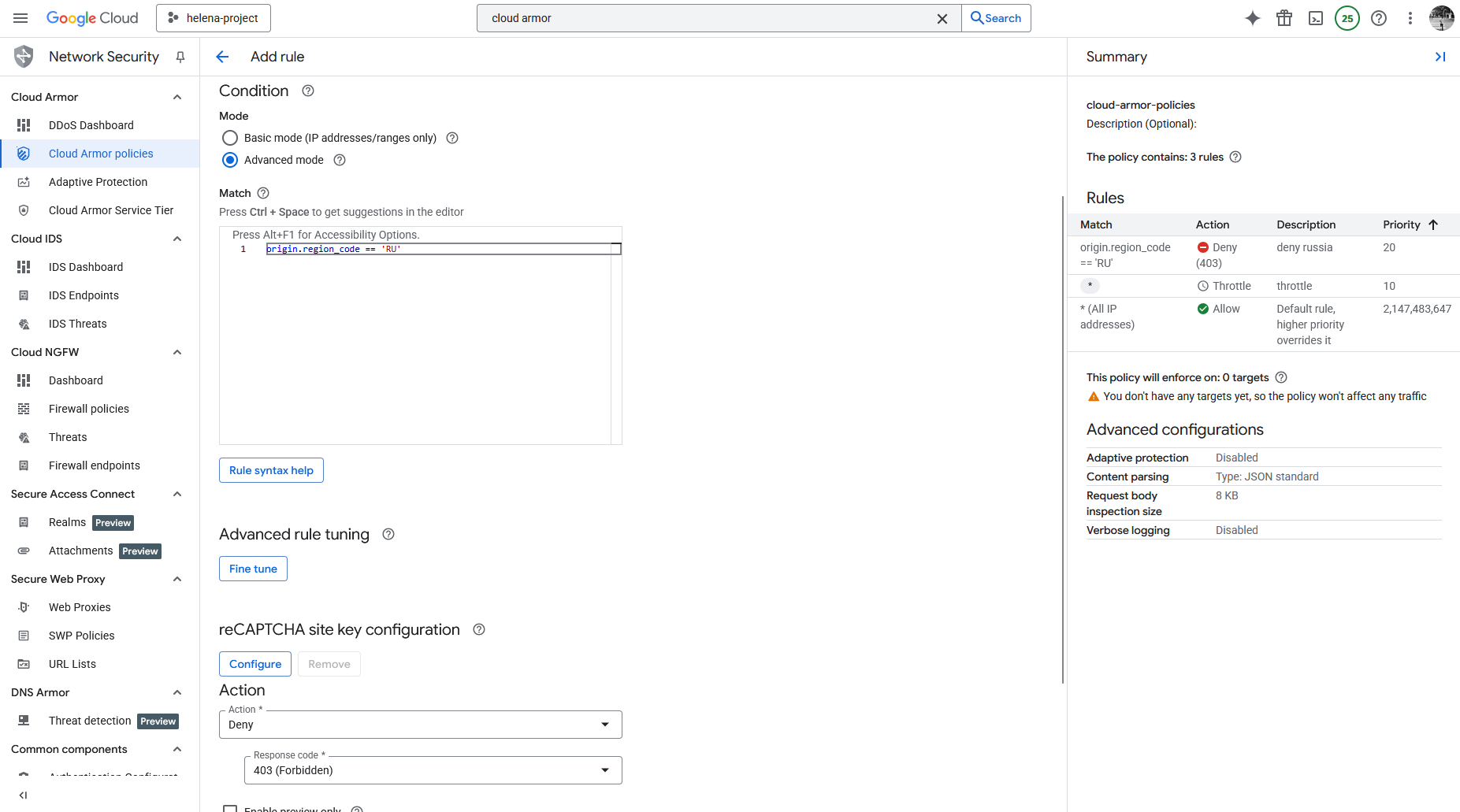 And for the second scenario we will add another rule that blocks access from IP originating from Russia