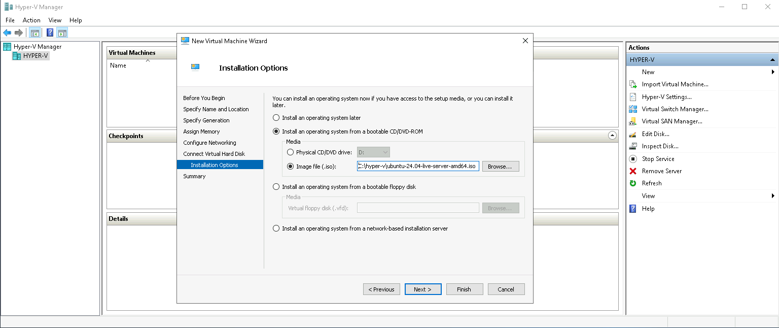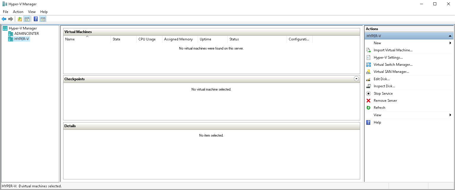 Then open the Hyper-V Manager and add the Hyper-V Server to the manager