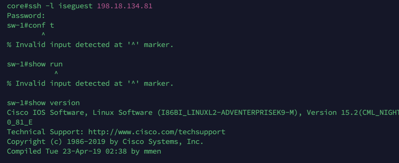 test aaa authentication ISE host 198.18.134.103 username iseguest password cisco123