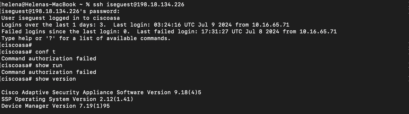 If we login with iseguest, we’ll also be given TACP-0 role by default, but we don’t have permission to escalate the privilege to TACP-15