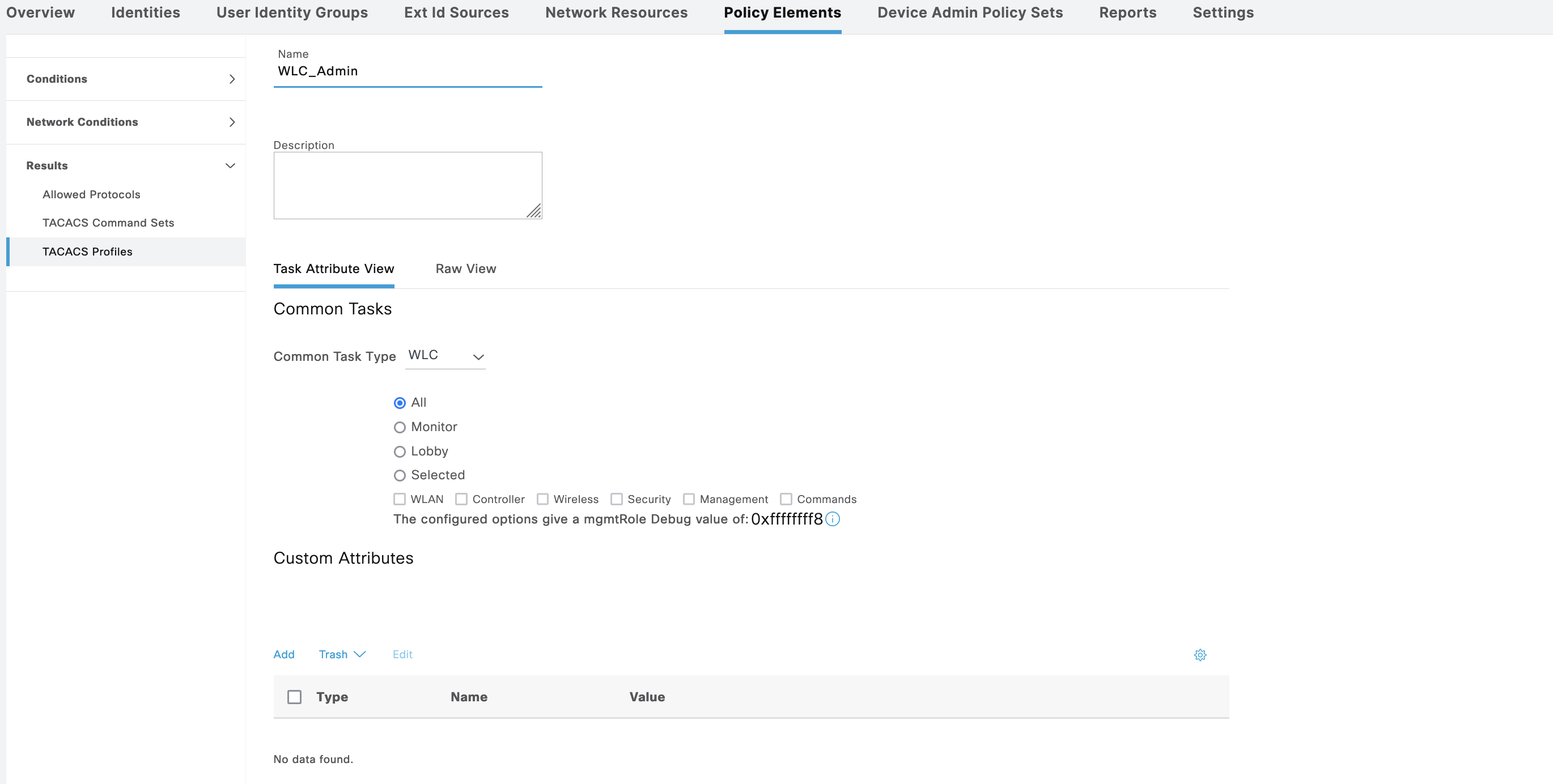 Next for Cisco WLC, we’ll also create a new Policy Sets with 2 Shell Profiles Authorization