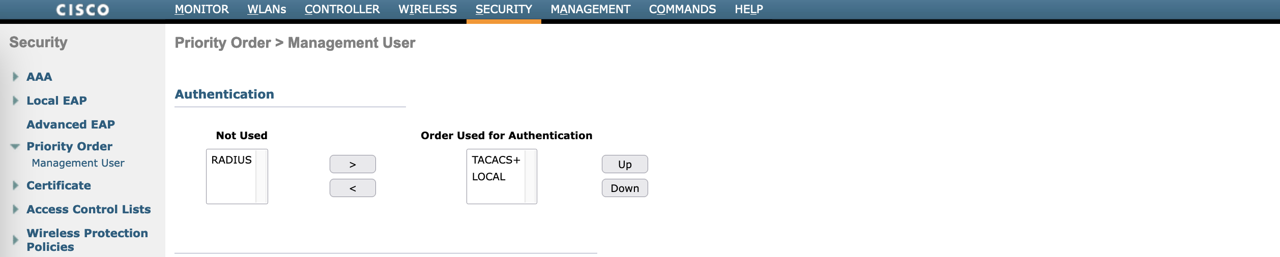 Next configure the authentication order on Prioriy Order » Management User