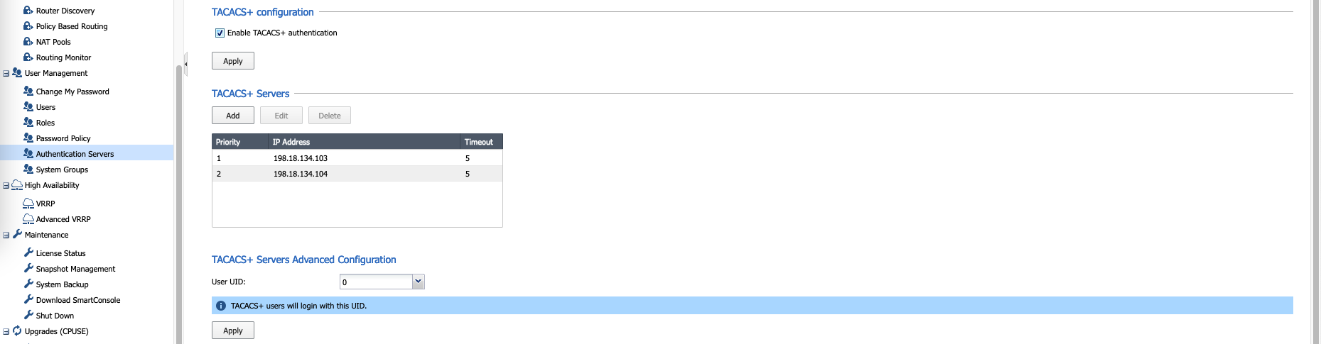 Next add the TACACS Servers