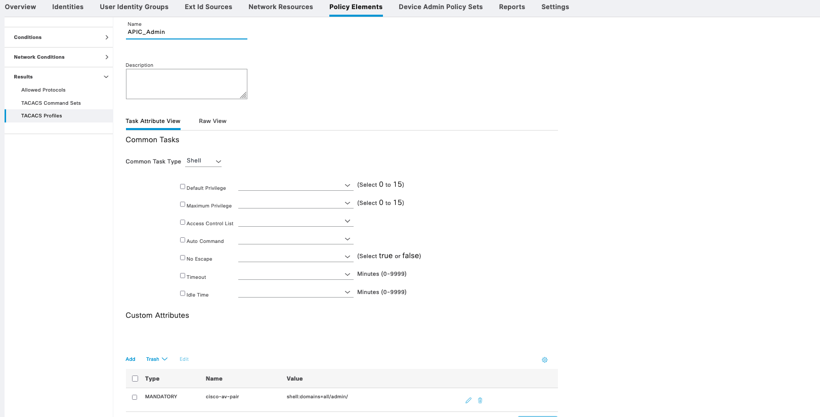 For APIC, we create another Policy Sets with also 2 Shell Profiles