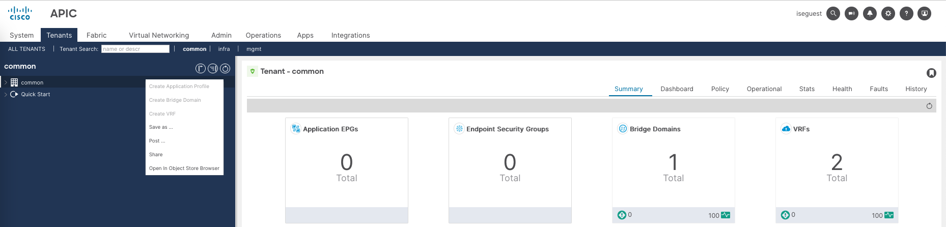 Now if we log in with iseadmin, we should be granted full access