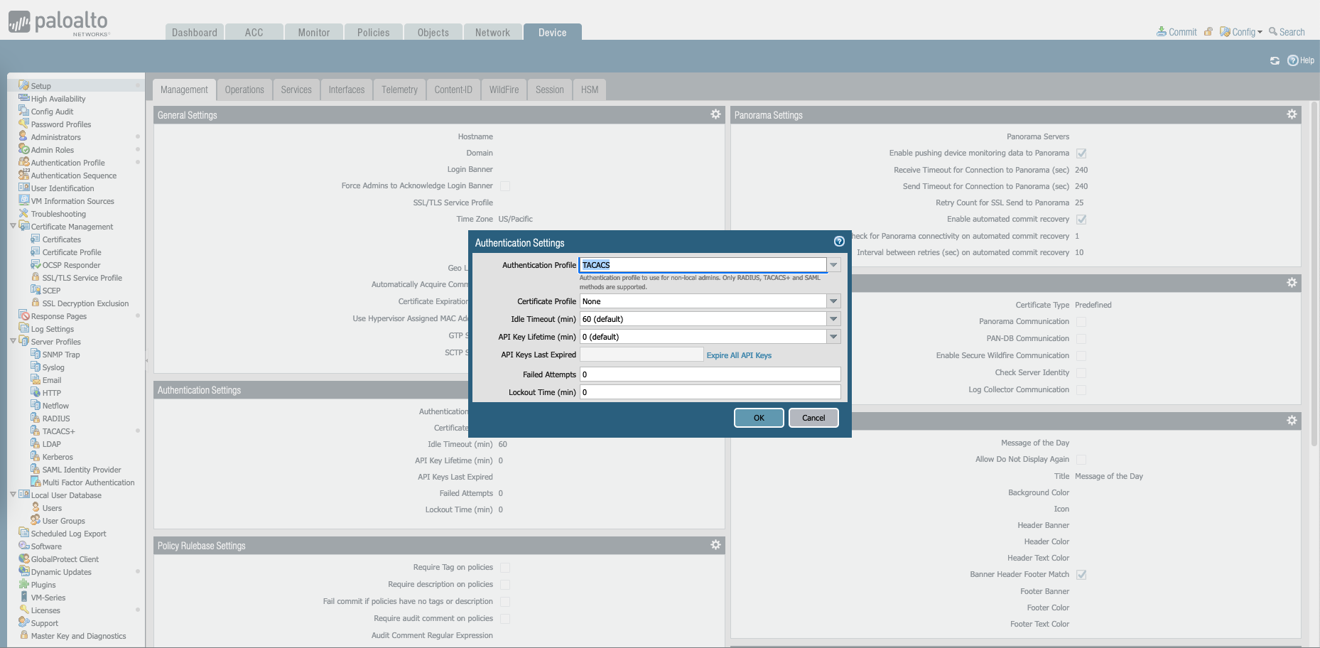 Finally on Device » Setup » Authentication Settings, select the Authentication Profile