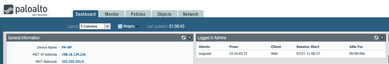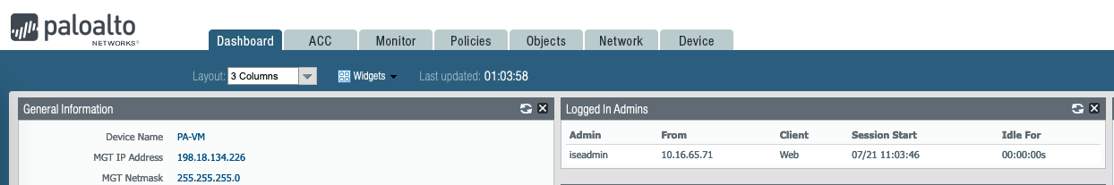 Now we can login to the Palo Device using the “iseadmin” with “Read-Write” role