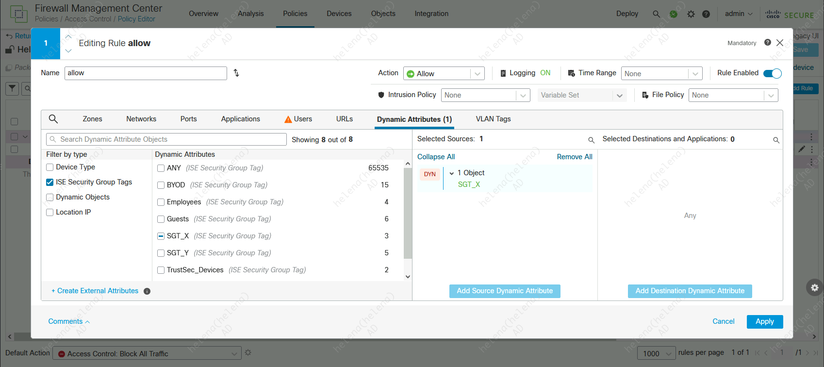 After the integration is complete, we can now use the SGT on the Access Control Policy