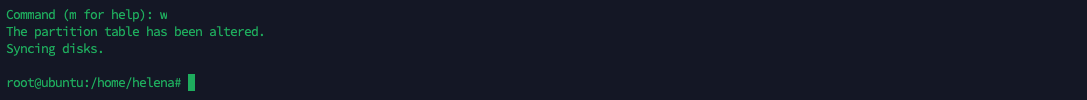 Running “lsblk” shows that the new sda4 partition has been created