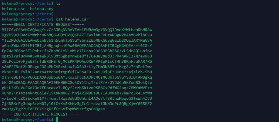 openssl req -new -newkey rsa:2048 -nodes -keyout helena.key -out helena.csr