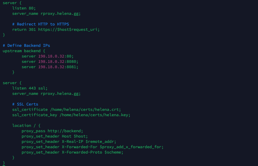 First we define an upstream named “backend” containing the web servers and point it on proxy_pass