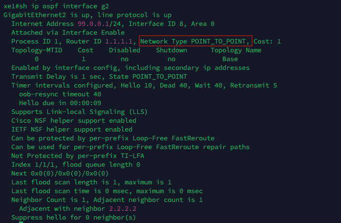 Checking the OSPF type, it shows that it is indeed a point-to-point connection