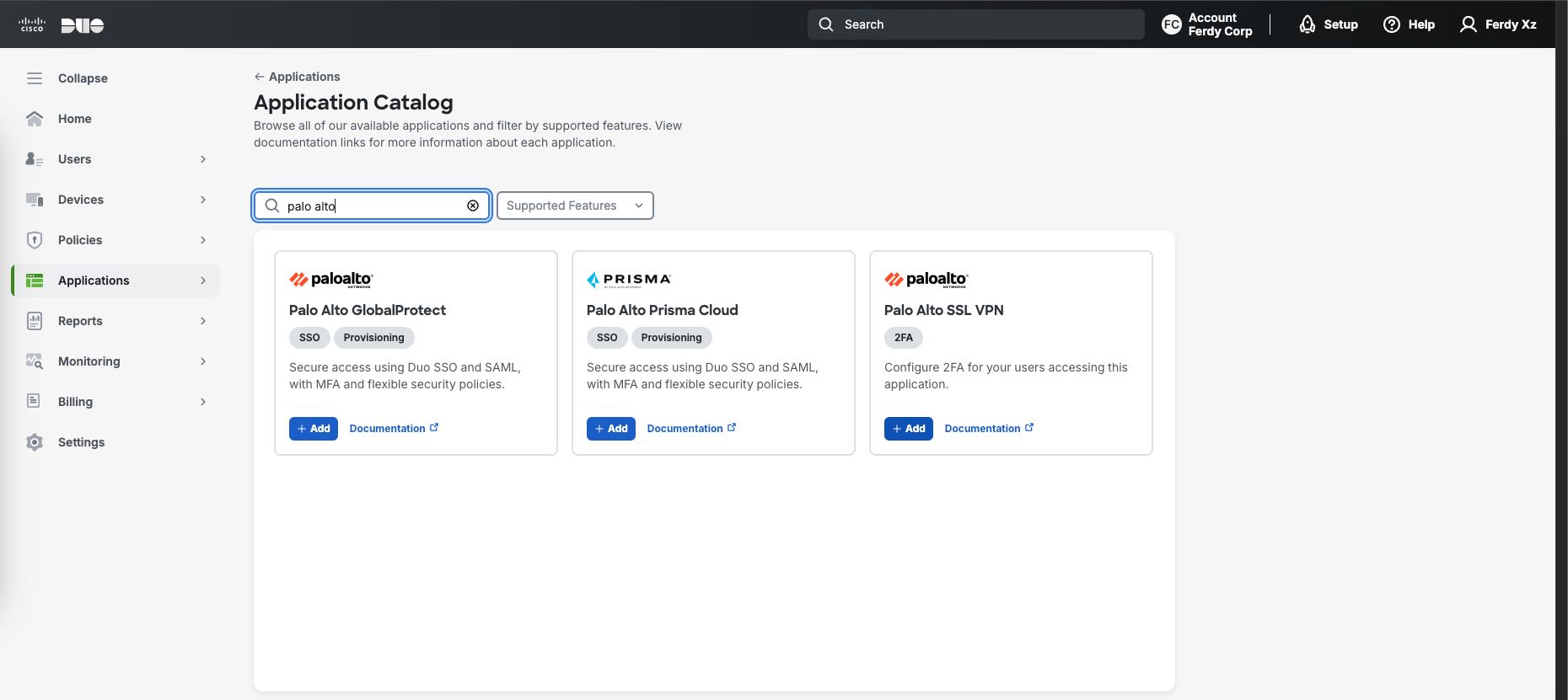 Then we add a Protected Application, Duo already provides a template for Palo Alto SSL VPN so lets use that