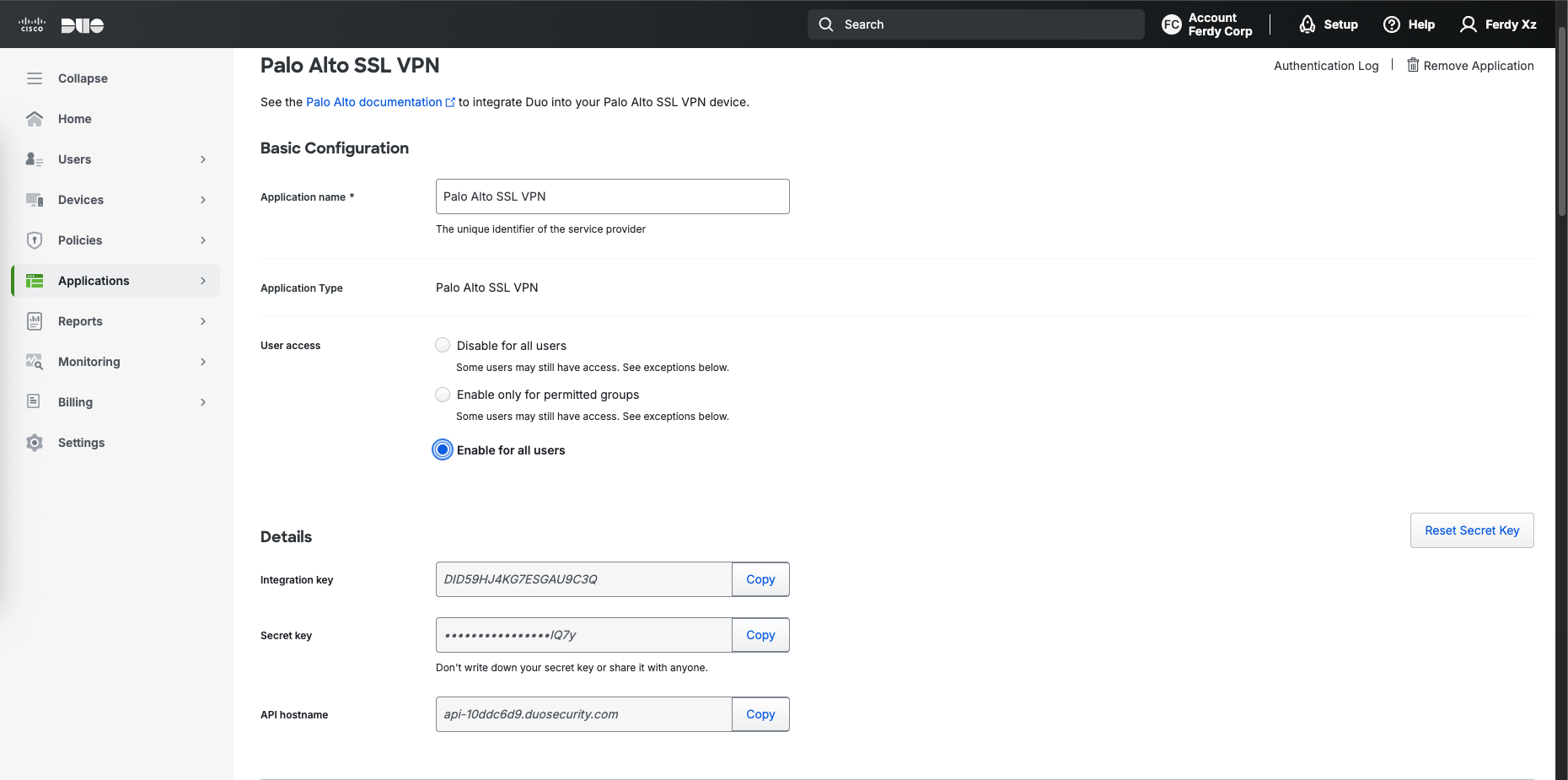 Cisco Duo with Palo Alto VPN