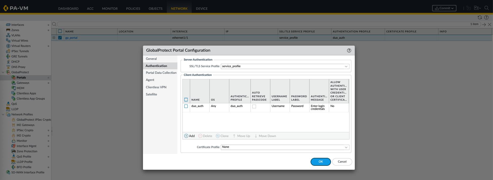 Optionally, if we’d like to also use MFA for Global Protect Portal, we can do the same configuration here