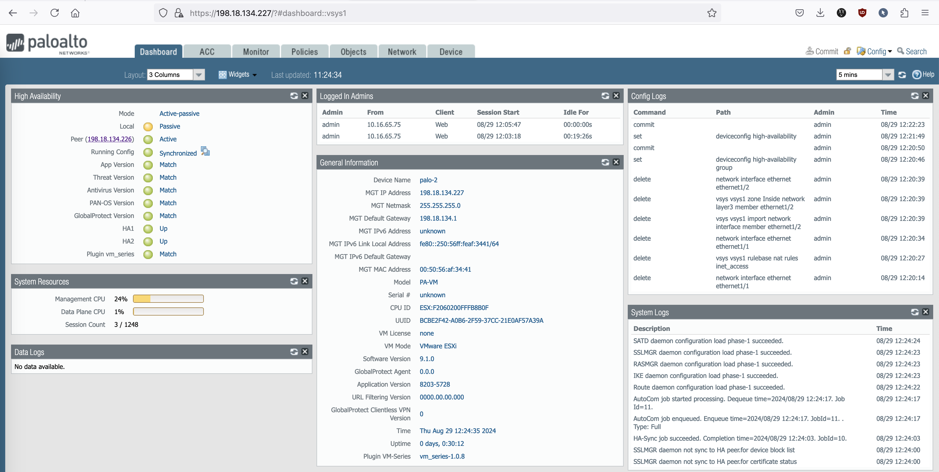 And on Palo-2, all the Palo-1’s configurations is synced to this node, including the IP Address configurations