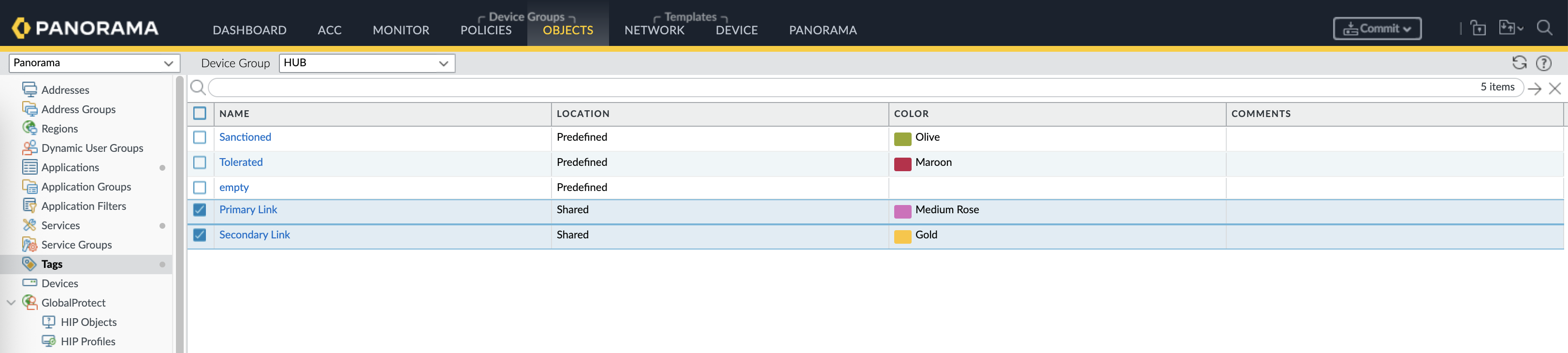 Next on the Objects, we create 2 shared tags to tag our 2 WAN links