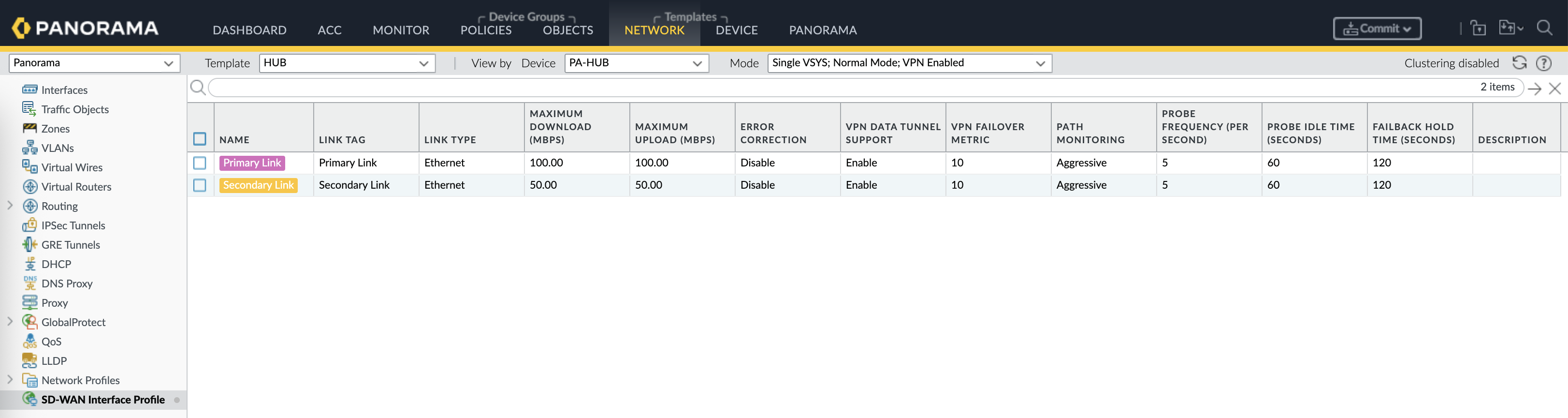 Then on the Network Template, here we configure SD-WAN Interface Profile based on the 2 tags created