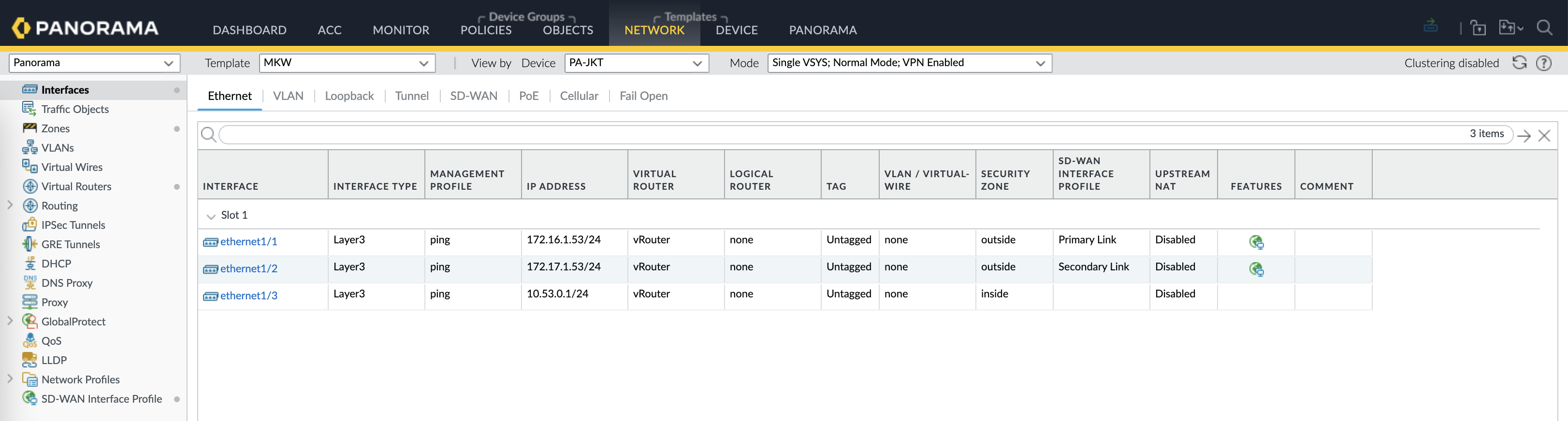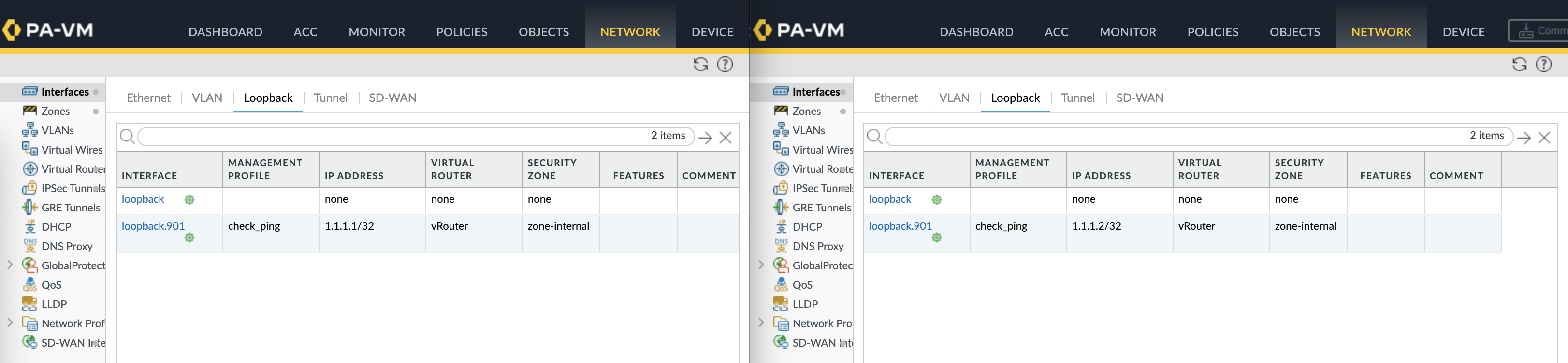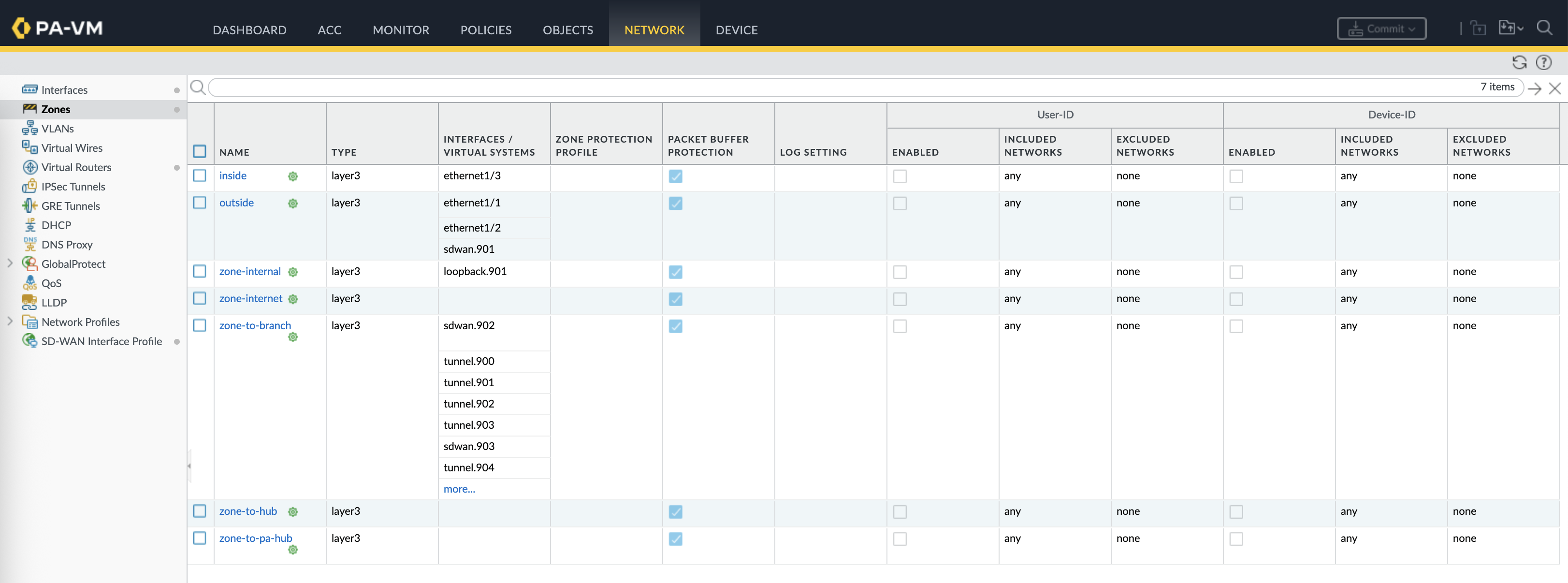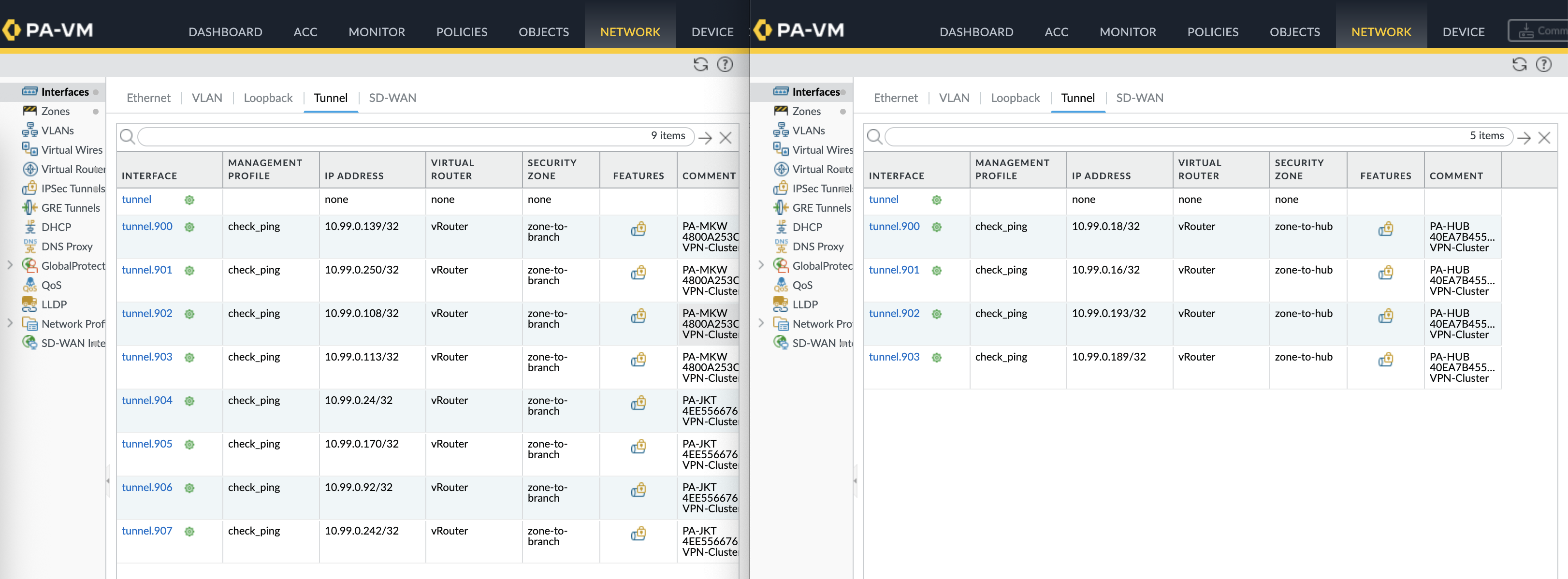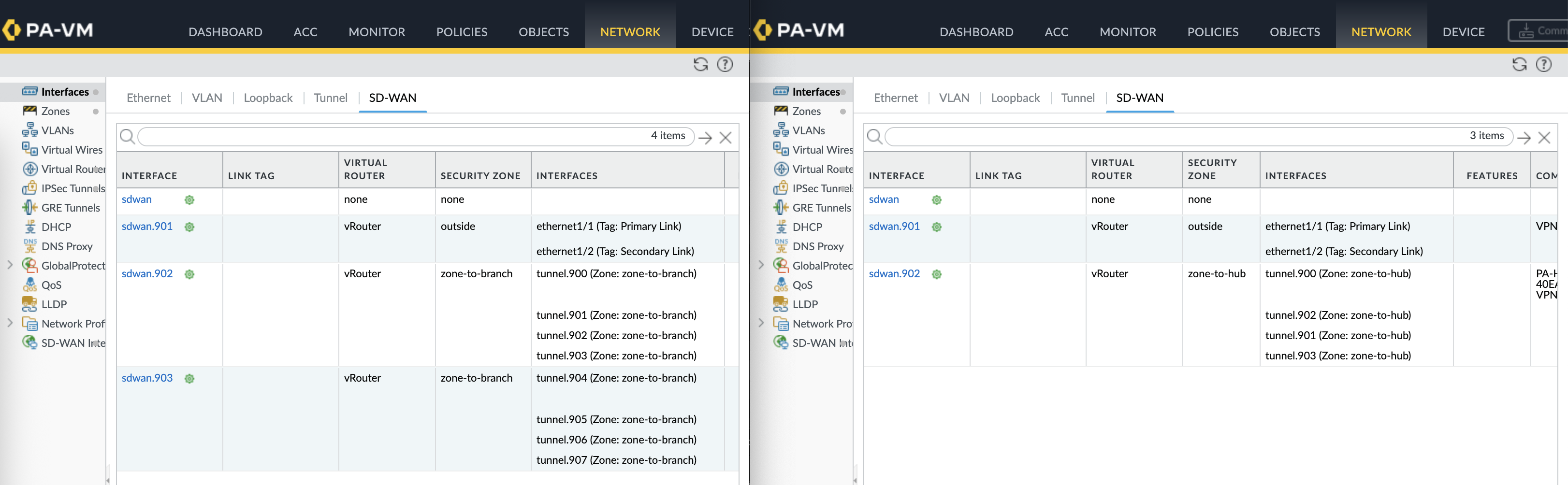 SD-WAN Virtual Interfaces are also created mapped to their respective tunnel interfaces and zones