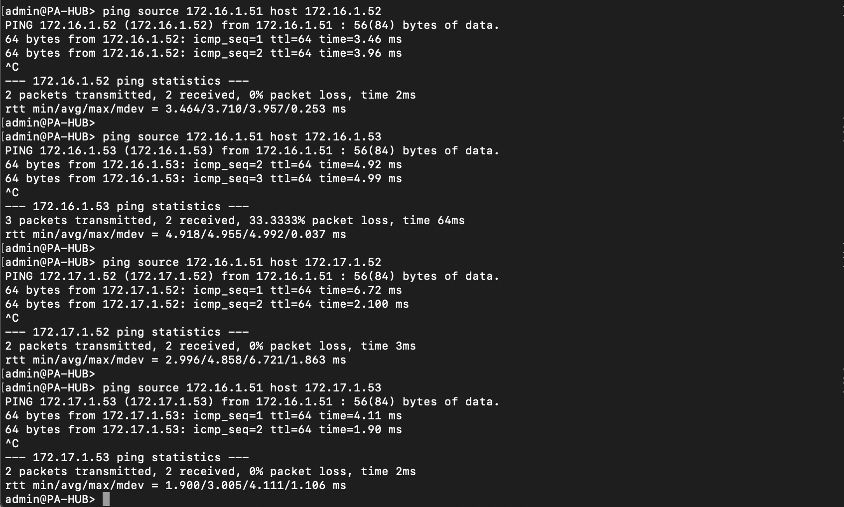 On the client side, connectivity tests are working, thus validating the SD-WAN deployment