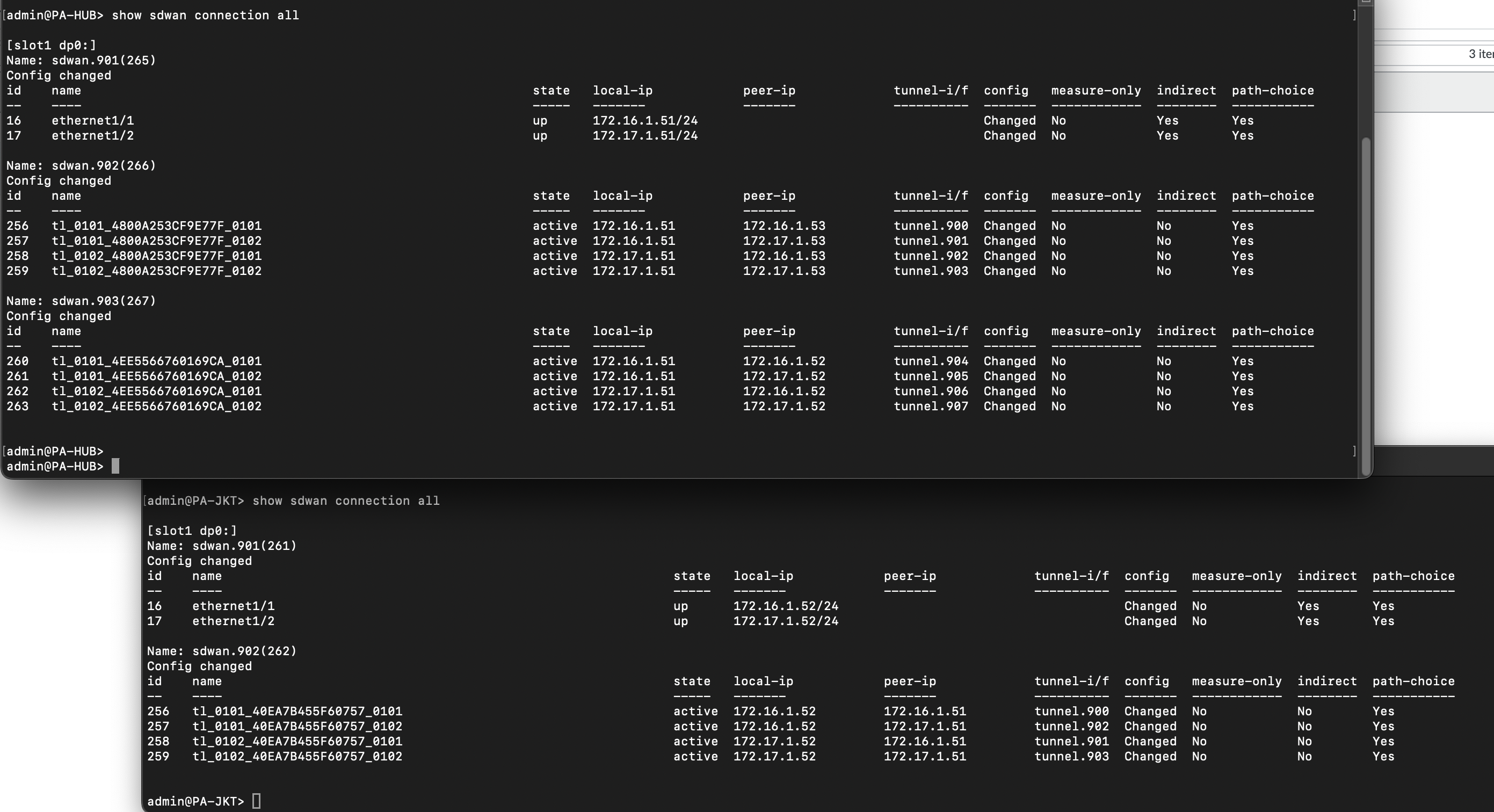 On CLI, we can validate the SD-WAN connectivity with “show sdwan connection all”