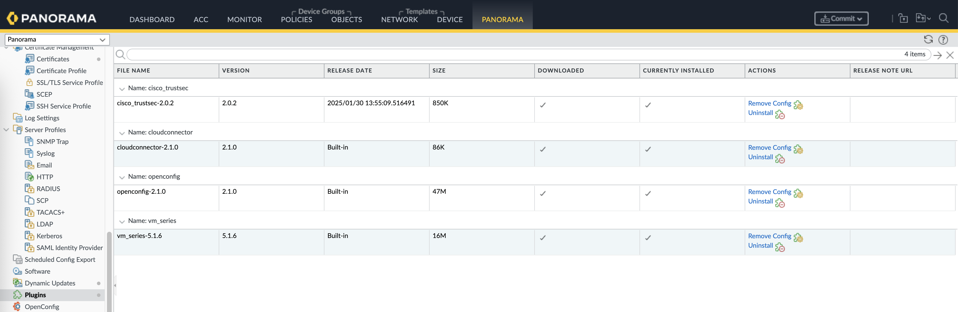 request plugins cisco_trustsec create-account server-cert-verification-enabled no client-name panorama host 198.18.128.13