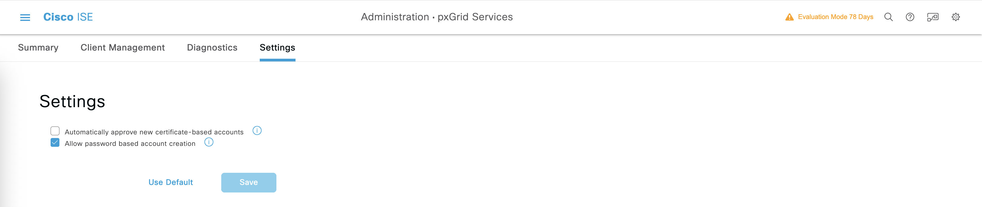 On Cisco ISE, on Administration » PXGrid » Settings, make sure to allow password based account creation