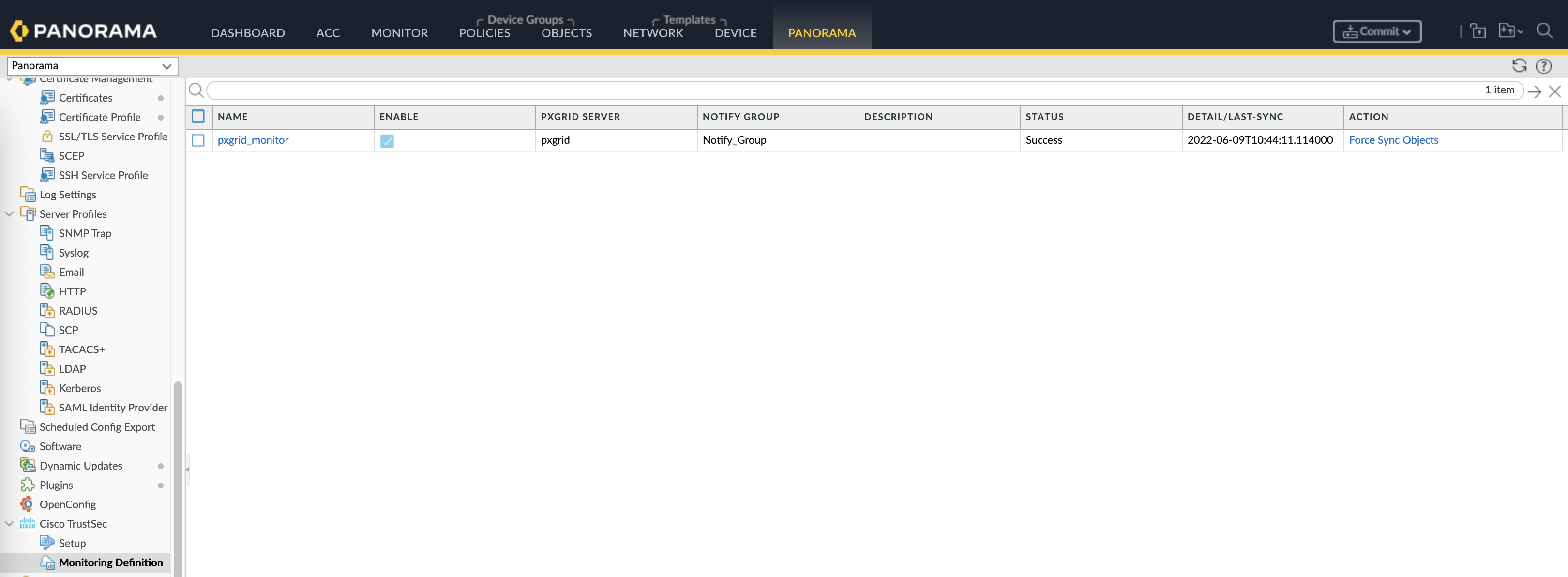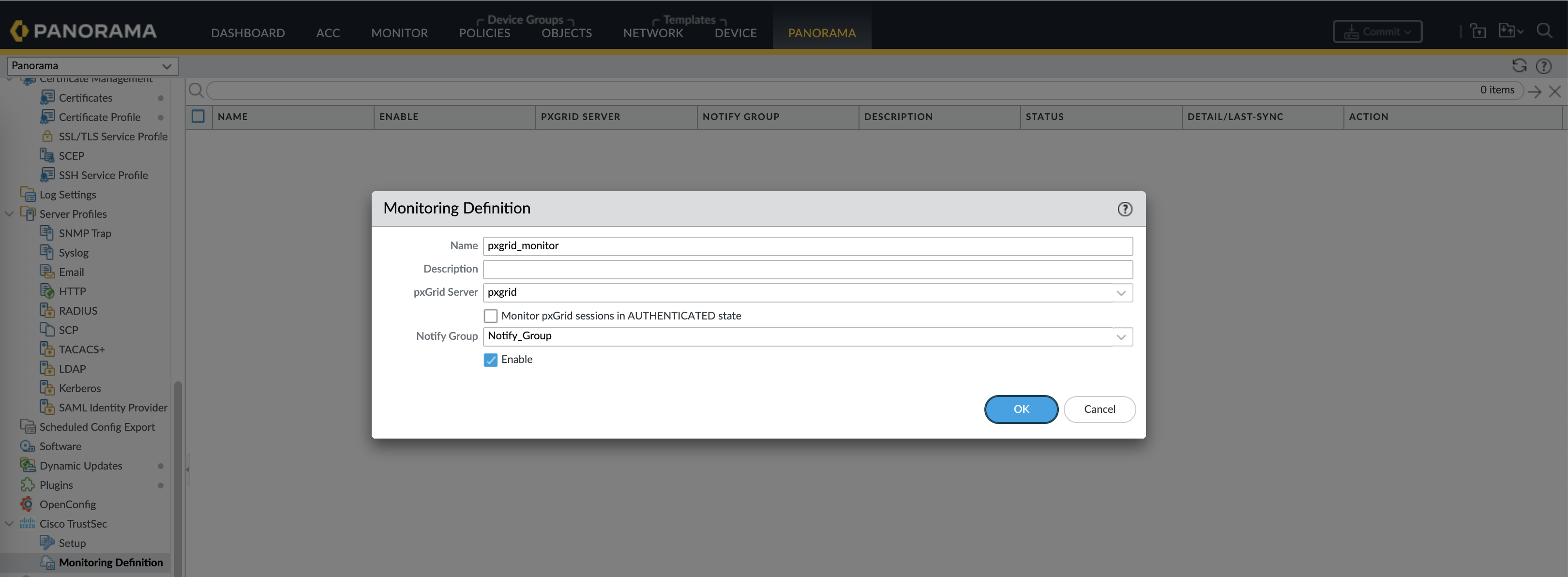 After that on the Monitoring Definition, add new one refrencing the PxGrid Sever and the Notify Group created earlier