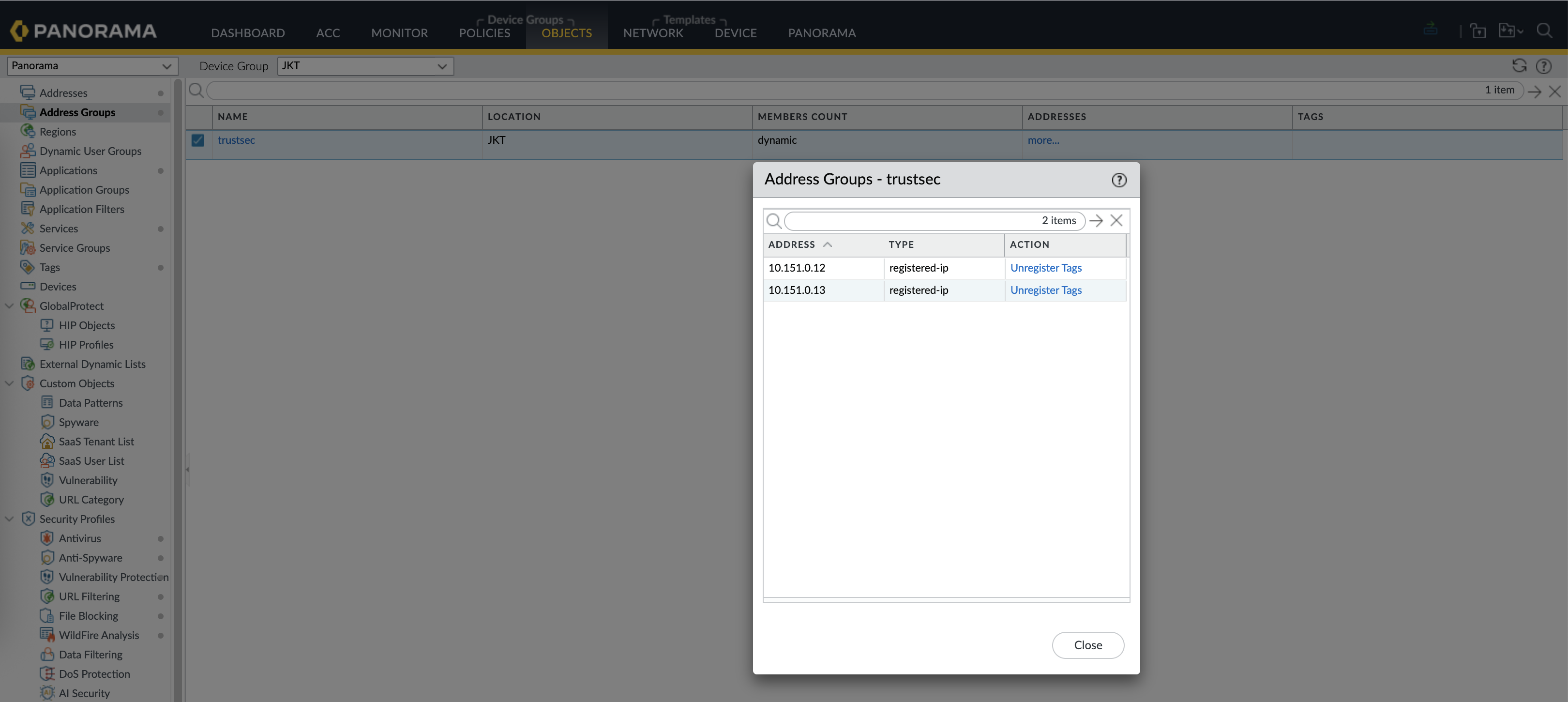 On the Dynamic Object we created, we will be able to see the SGT-to-IP mappings for the specified SGTs