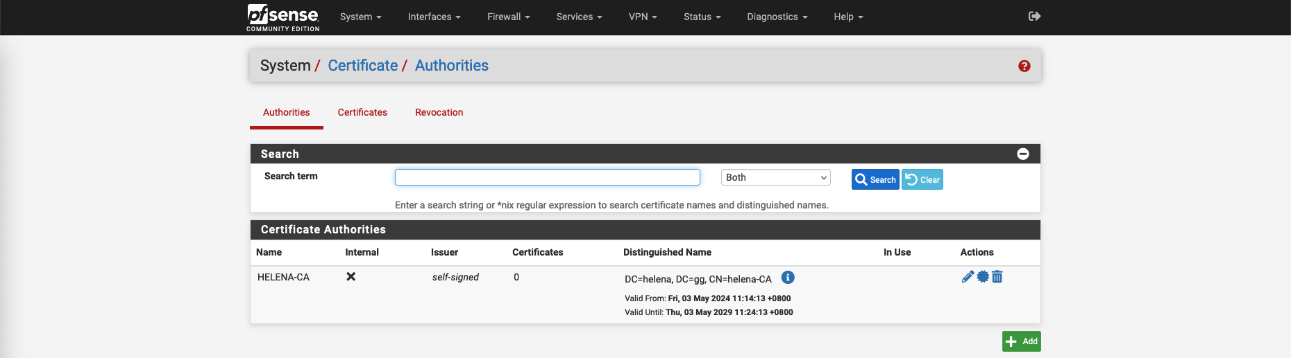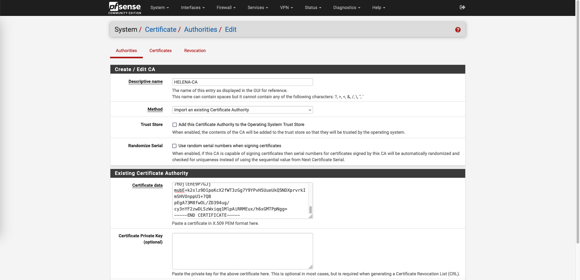 Here we already have a CA server, so lets just add it as our Trusted CA on pfSense on System » Certificate » Authorities