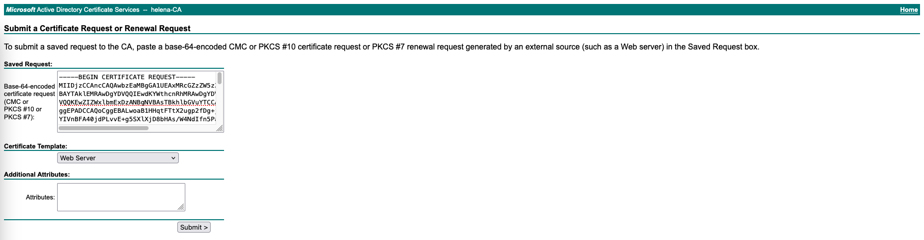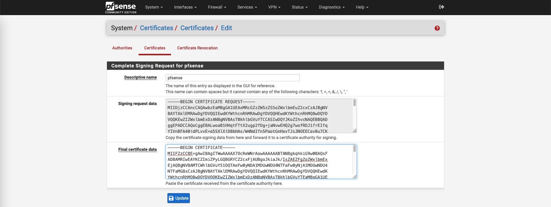 Next create a CSR for our pfSense’s certificate