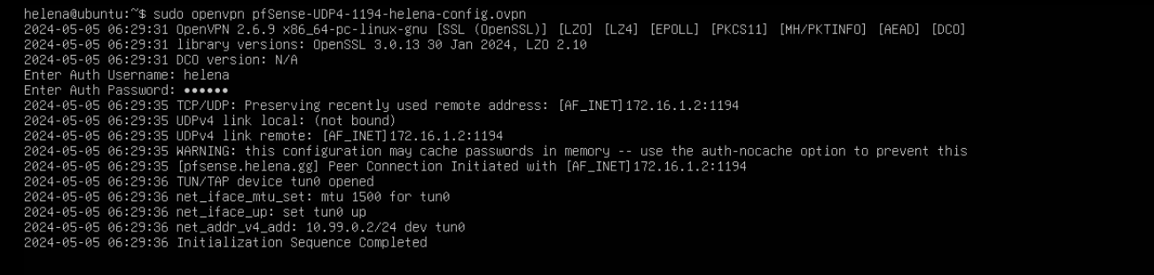 On Linux, we can simply run the command “openvpn” followed by the exported config, then enter credentials
