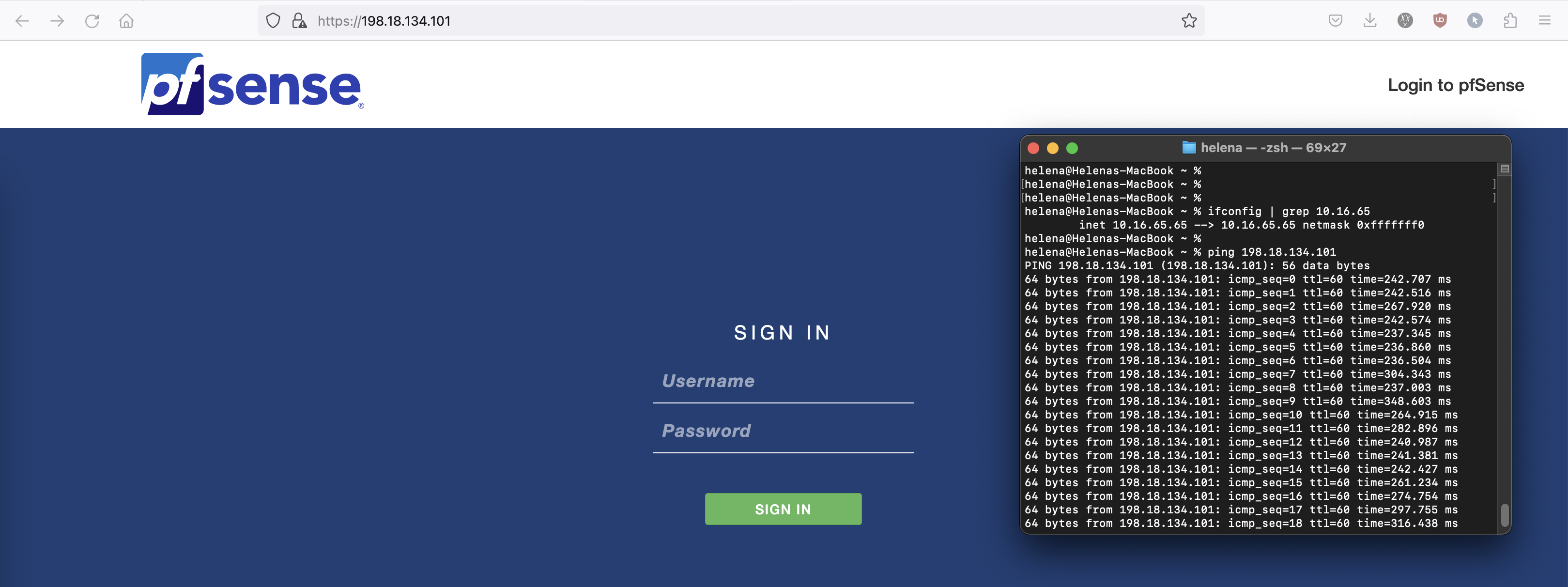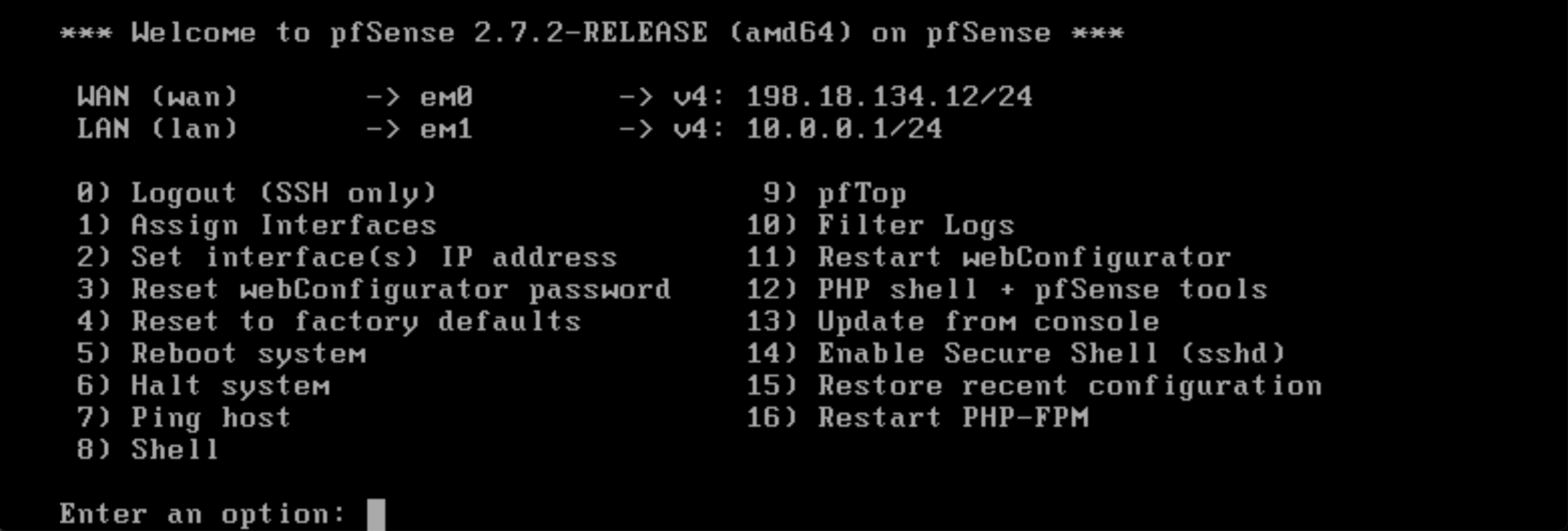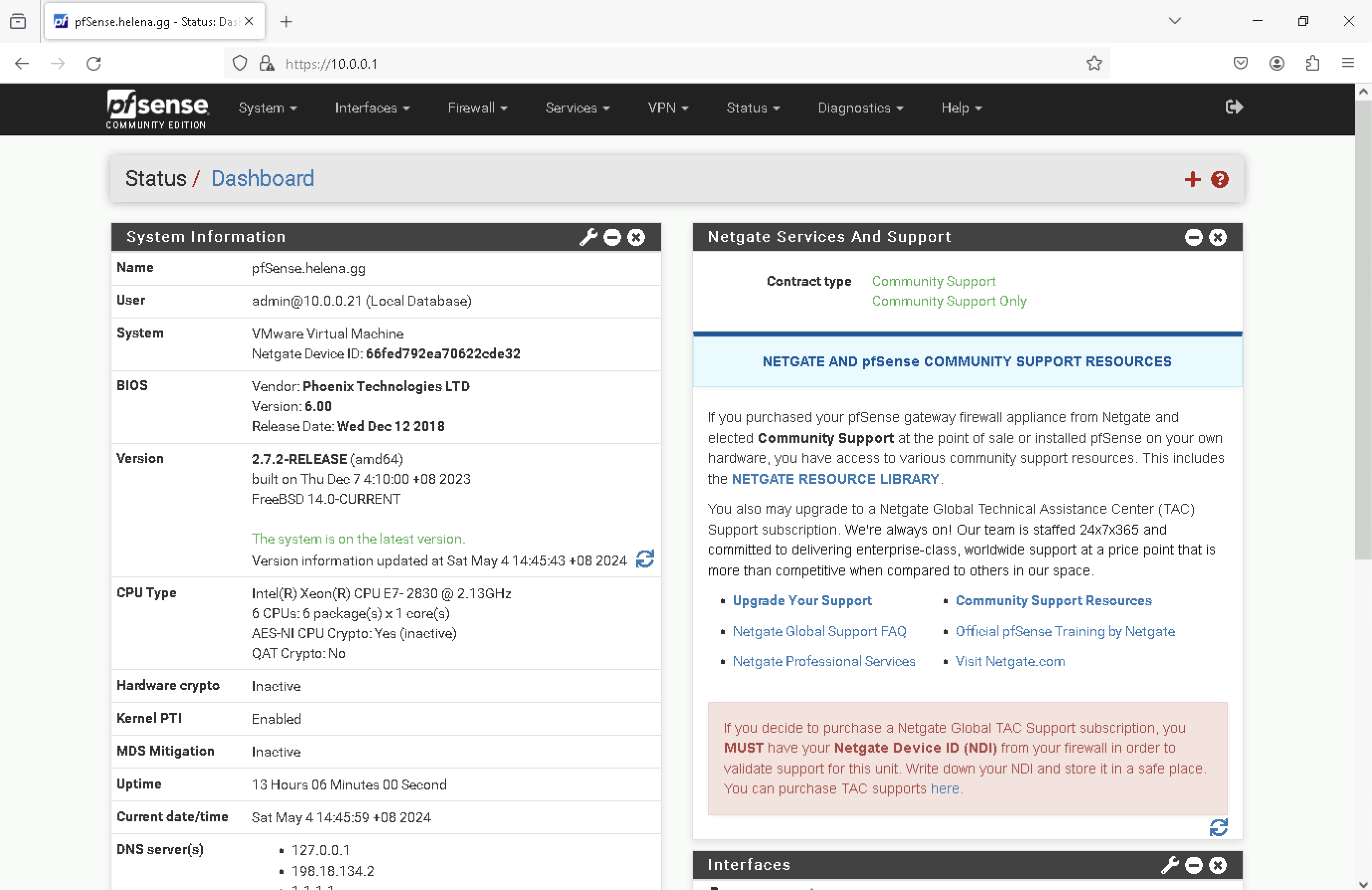 The pfSense Firewall is up and running